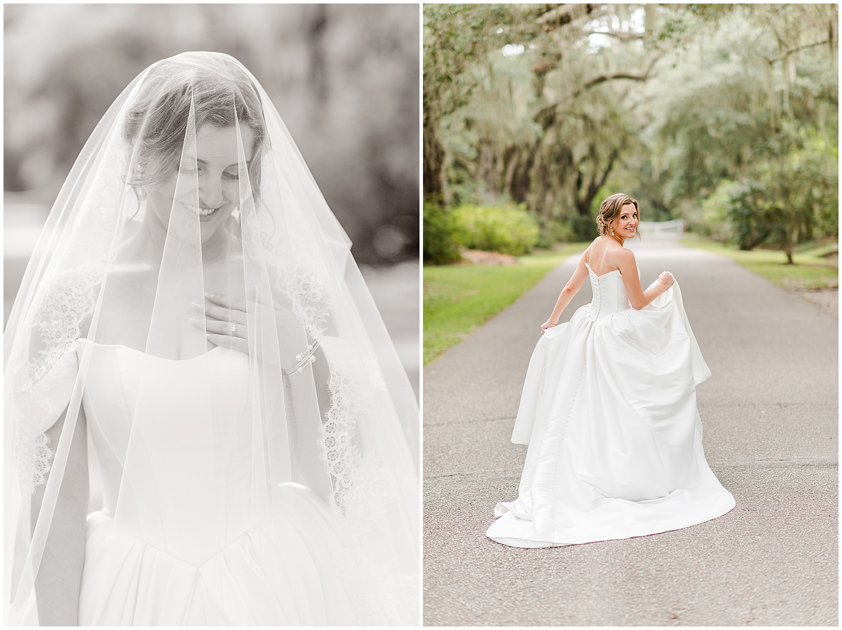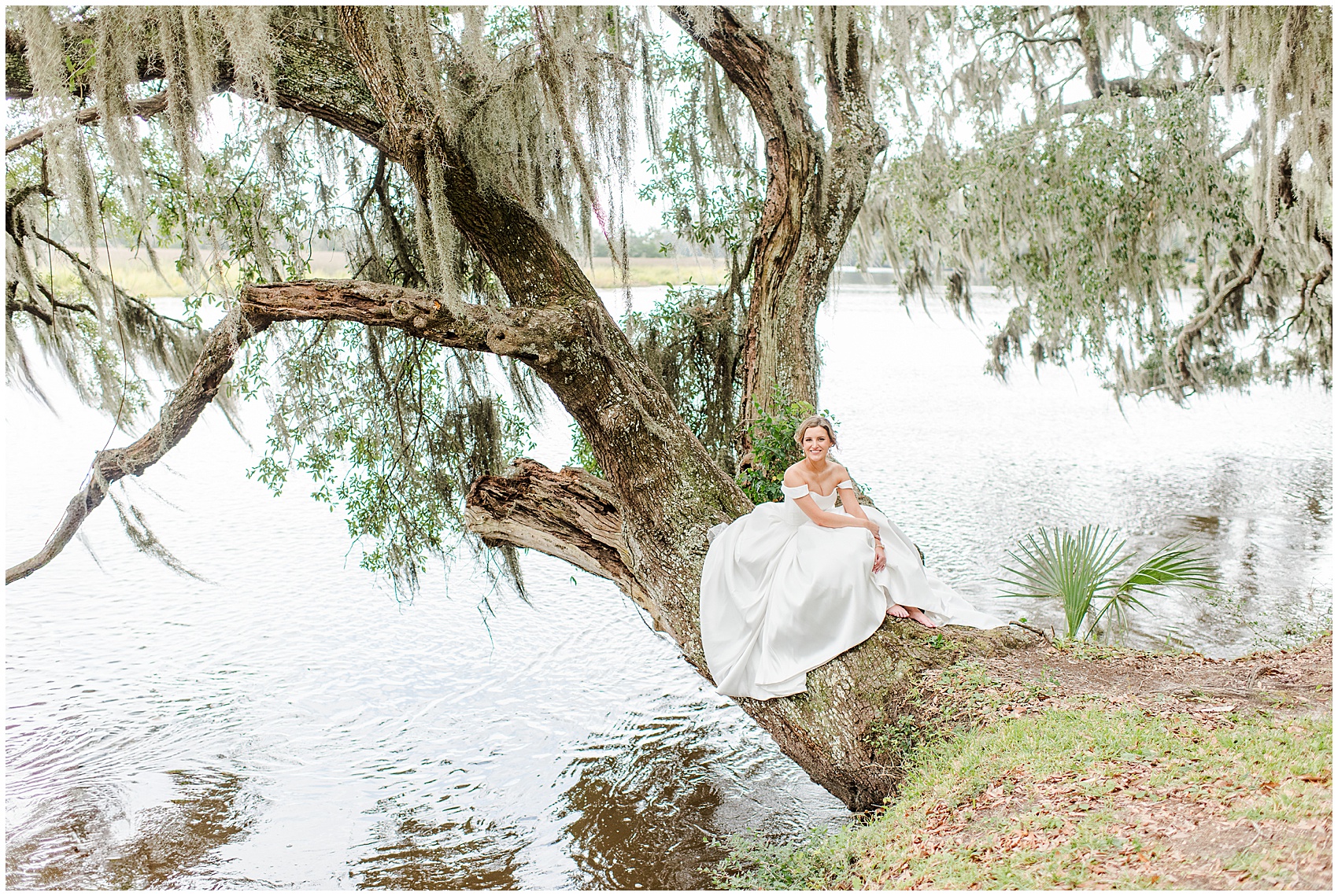Now that Emily is married I can finally share these stunning Bridal Portraits! Emily chose Magnolia Plantation for her session and I am so happy she did! Magnolia is one of the most stunning places in the low country. The sweeping moss is everywhere and it makes for a beautiful backdrop! Emily was such a good sport and even climbed out onto a tree over the water for a few! They ended up being some of my favorite images! Her Classic style photographed beautifully against the Spanish Moss covered trees. I couldn’t get enough of these!