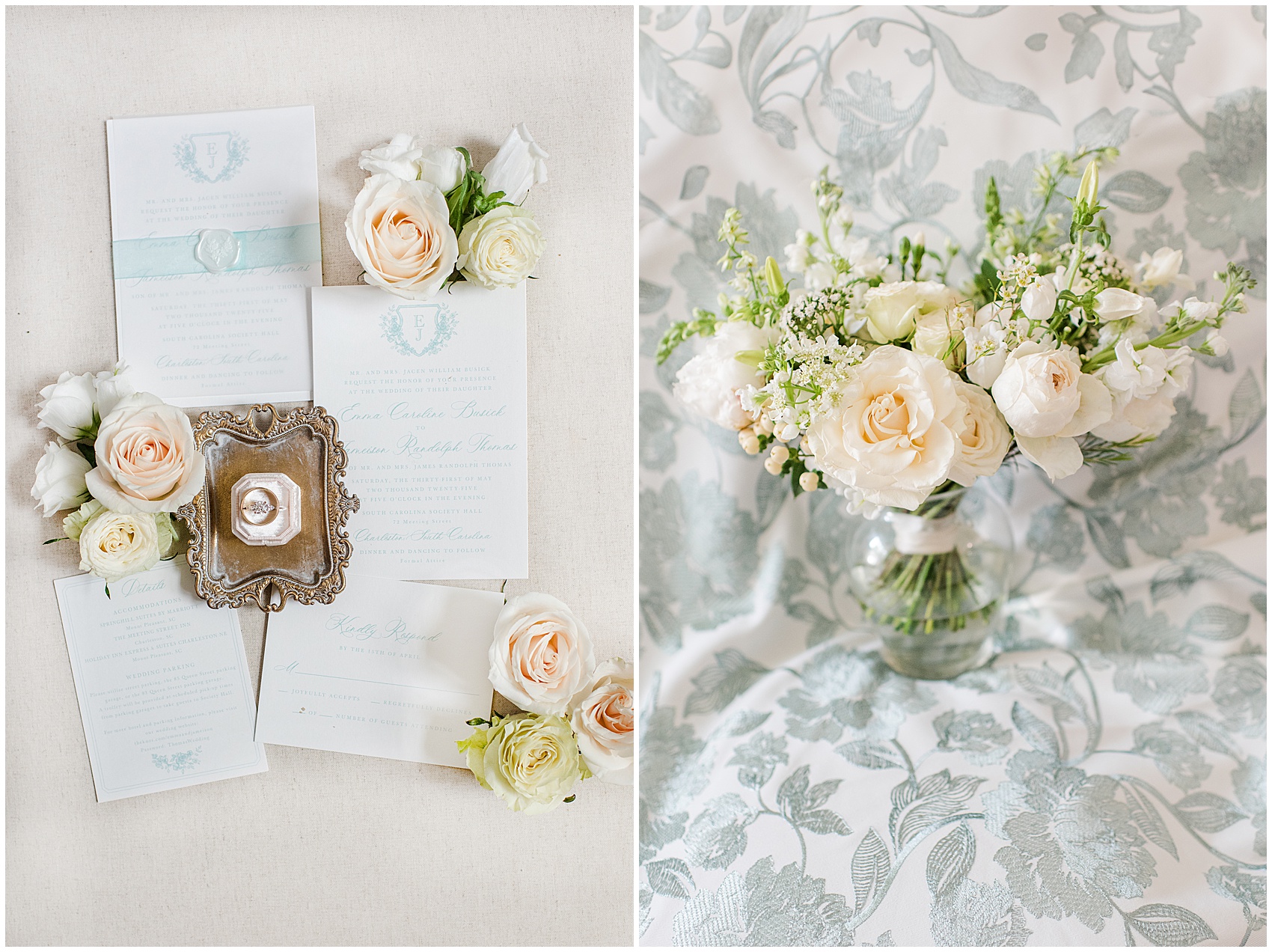 Emma and Jameison tied the knot at the gorgeous SC Society Hall in Downtown Charleston. Emma chose a gorgeous light teal paired with classic white florals to compliment the historic walls of Society Hall. Goldbug events and Modern Floral brought her vision to life beautifully! Emma and Jameison we are so thankful to have been able to share in the joy and happy tears of your day! We wish you a lifetime of happiness!