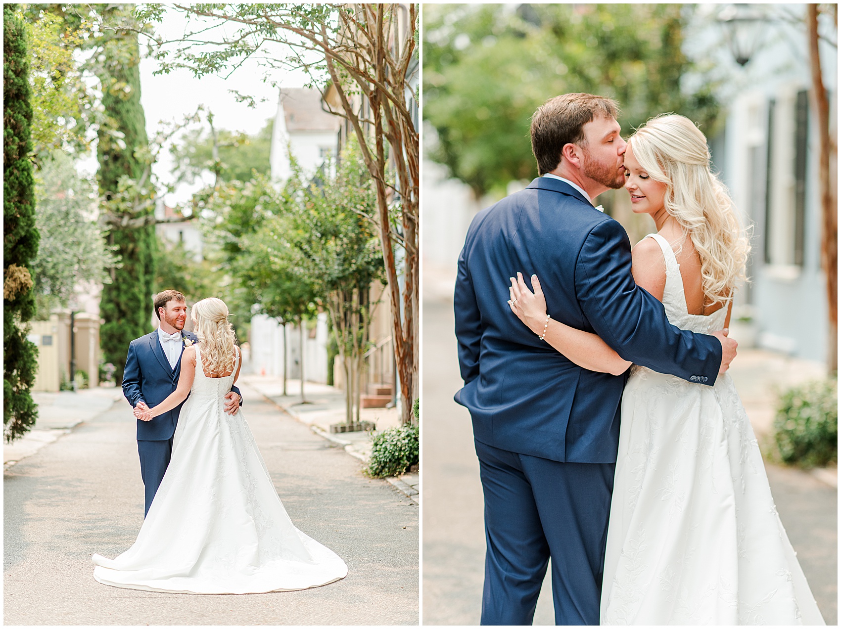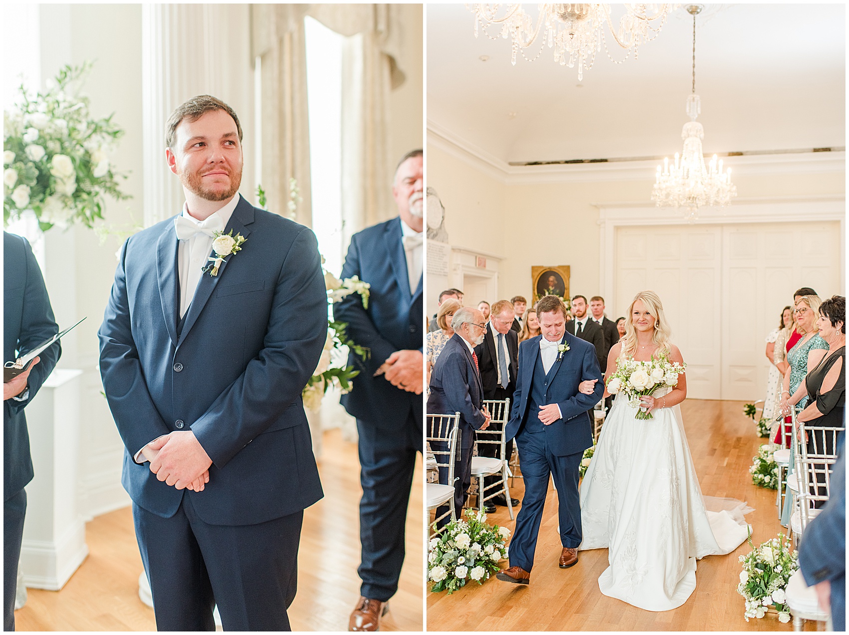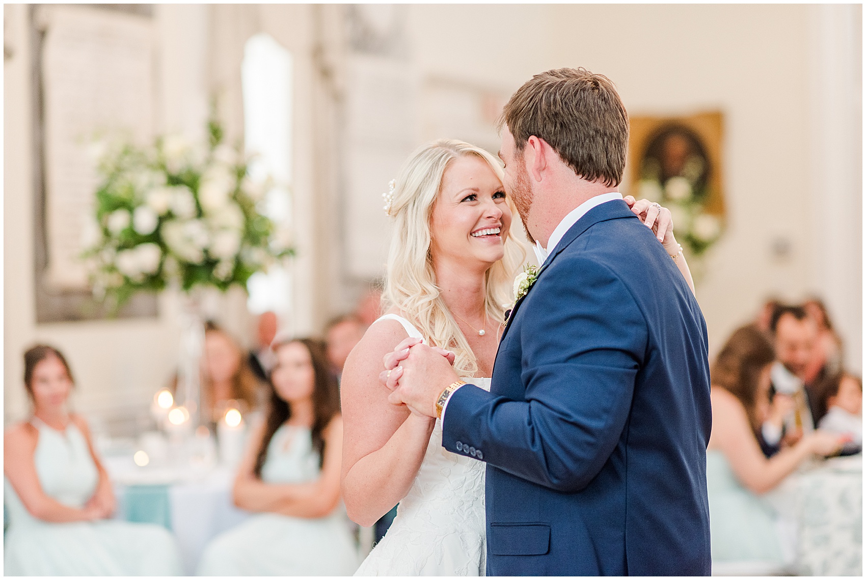 She walked out the door onto the second floor balcony, holding her gown in her hands. Her face was all smiles as she glanced over at Jameison facing the street, anxiously waiting to turn around. As they finally shared their first look on their wedding day, they went from giant smiles to happy tears and back again. This was just the start of the happy tears on this day. Emma’s father wept all the way down the aisle as he gave his daughter away. When they shared their father daughter dance later, there was barely a dry eye in the place.